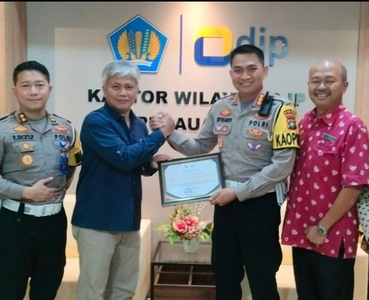 Rangkaian sosialisasi tersebut, sekaligus memberi penghargaan yang diterima langsung oleh Dirlantas Kombes Pol. Tri Yulianto di kantor DJP Kepri, Kamis (7/3/24).