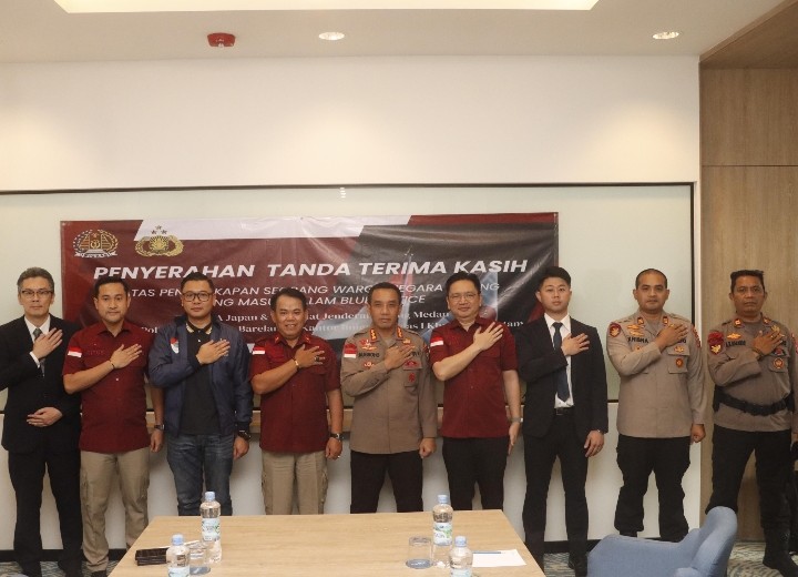 Kedutaan Besar Jepang memberi penghargaan kepada instansi penegak hukum atas penangkapan WN Jepang DPO Interpol Blue Notice a.n. Yusuke Yamazaki yang melakukan kejahatan penipuan di Jepang.