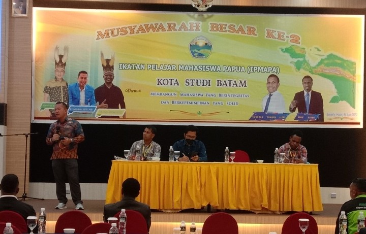 MEDIAALIF.COM,Batam – Ikatan Pelajar dan Mahasiswa Papua (IPMAPA) Kota Studi Batam yang didukung oleh Polda Kepri, menggelar Mubes ke 2 bertajuk “Membangun Mahasiswa Yang Berintegritas dan Berkepemimpinan Yang Solid”, di Hotel Baverly Lubuk Baja Kota Batam (24/6/2022).