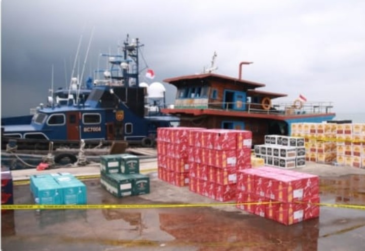 MEDIAALIF.COM,Batam – Operasi Jaring Sriwijaya yang merupakan tim gabungan patroli laut Bea Cukai Batam, Bea Cukai Kepri, dibantu oleh Tim Patroli Lantamal IV, berhasil menangkap kapal kayu tanpa nama bermuatan minuman beralkohol ilegal sebanyak 8.784 botol.