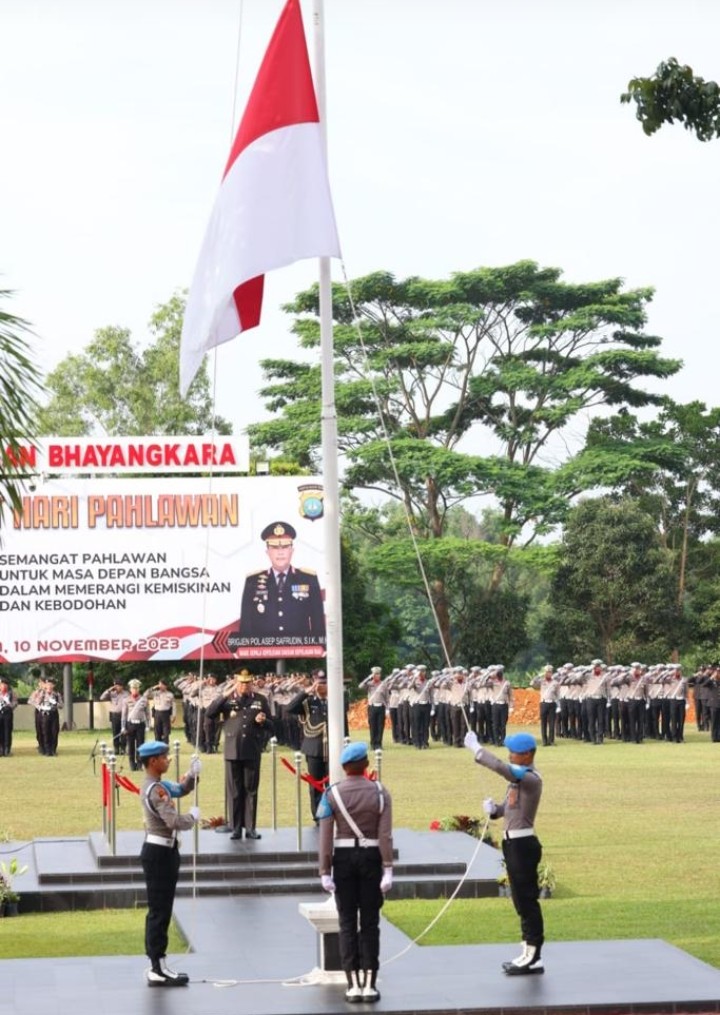 Upacara tersebut dipimpin langsung oleh Kapolda Kepri Irjen Pol Drs. Tabana Bangun, M.Si, dihadiri Wakapolda, Pejabat Utama dan Personel, di Lapangan Mapolda Kepri, Jumat (10/11/2023).