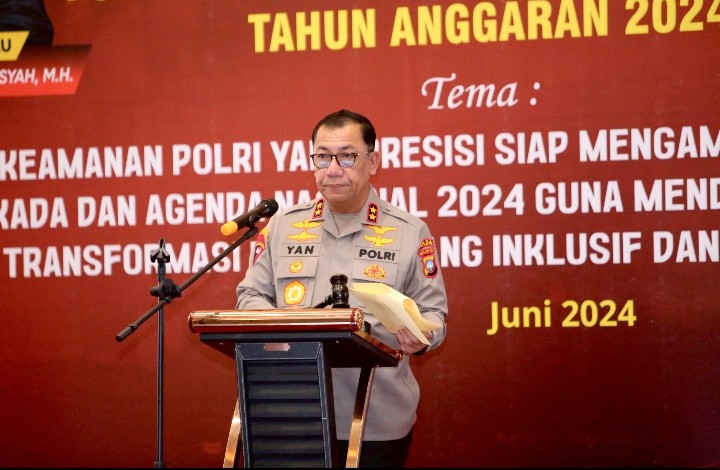 Termasuk permasalahan atau hambatan yang dihadapi, mengusung tema “Intelijen Keamanan Polri yang Presisi siap mengamankan Penyelenggaraan Pilkada dan Agenda Nasional 2024 guna mendukung Percepatan Transformasi Ekonomi yang Inklusif dan Berkelanjutan”.
