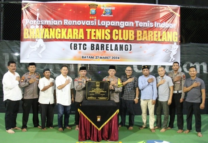 MEDIAALIF.COM,Batam – Kapolresta Barelang Kombes Pol Dr. Nugroho Tri N, SIK, MH melaksanakan Kegiatan peresmian renovasi lapangan tenis Indoor Bhayangkara Tenis Club Barelang (BTC Barelang) di Lapangan Tenis Mapolresta, Rabu. (27/03/24).