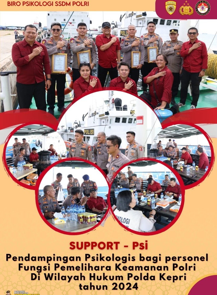 MEDIAALIF.COM,Batam – Tim Psikologi SSDM Polri menggelar kegiatan SUPPORT-Psi (Sentuhan, Pemberian Perhatian, Olah Rasa dan Terapi Psikologis) Pendampingan Psikologis Personel Fungsi Pemelihara Keamanan, bertempat di Pelabuhan Batu Ampar, Rabu (29/5/2024).